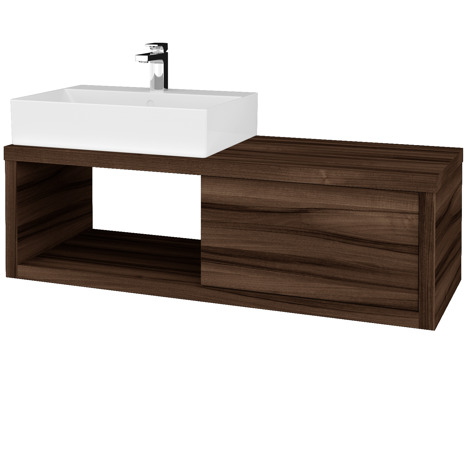 Závěsná umyvadlová skříňka (1200x370x500) s 1 zásuvkou, nikou a keramickým umyvadlem Kube Zobrazit více