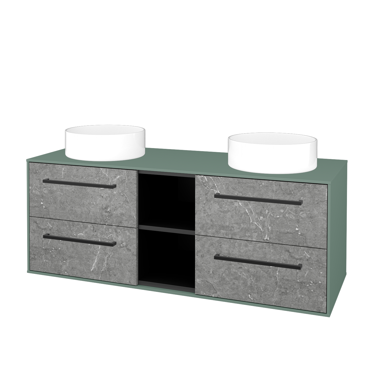 Umyvadlová skříňka (1300x510x500) se 4 zásuvkami, otevřenou nikou s policí a keramickými umyvadly na desku Circo Zobrazit více