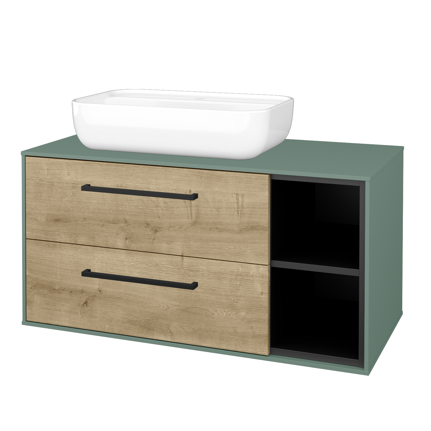 Umyvadlová skříňka (1000x510x500) se 2 zásuvkami, otevřenou nikou s policí a keramickým umyvadlem na desku Felis 2 Zobrazit více