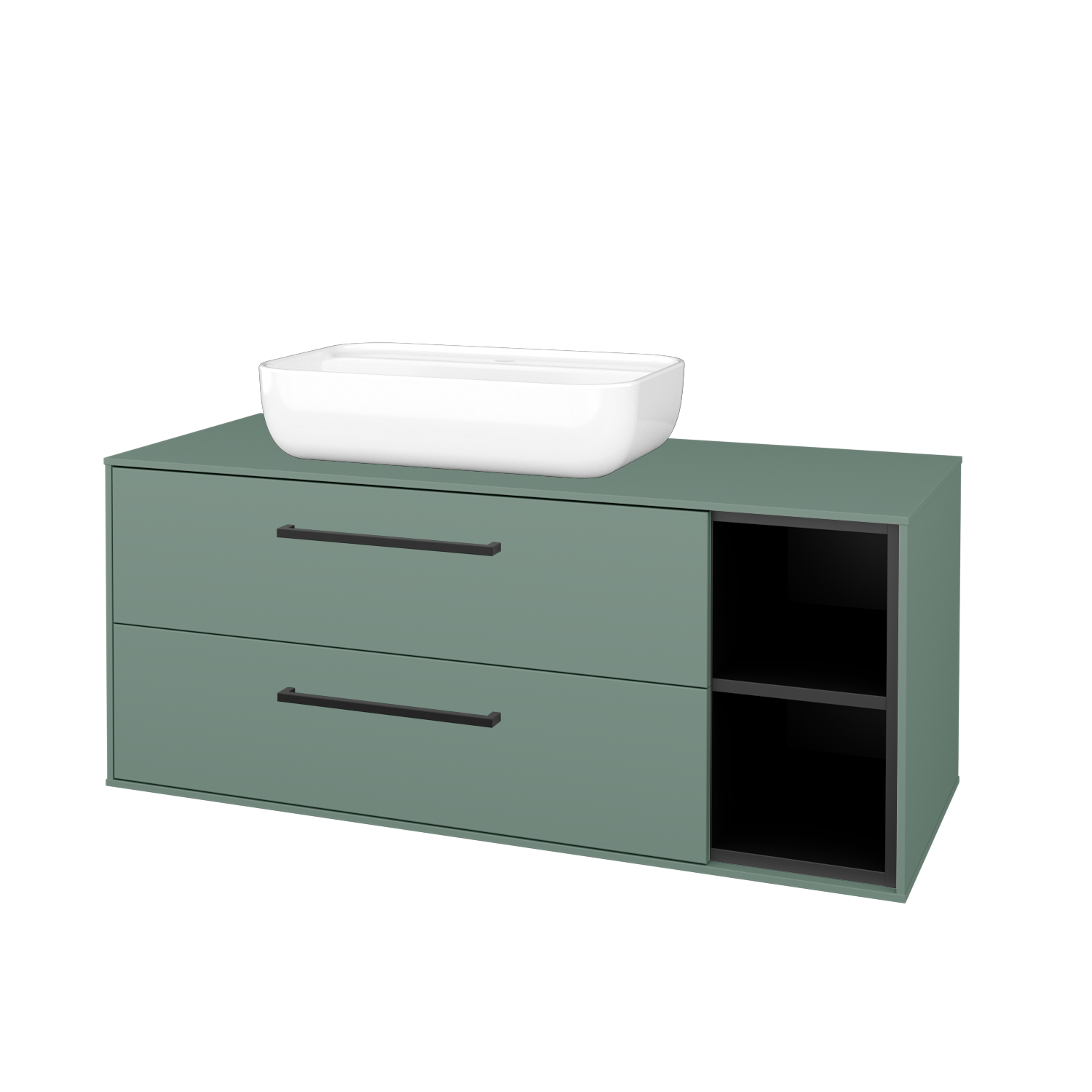 Umyvadlová skříňka (1200x510x500) se 2 zásuvkami, otevřenou nikou s policí a keramickým umyvadlem na desku Felis 2 Zobrazit více