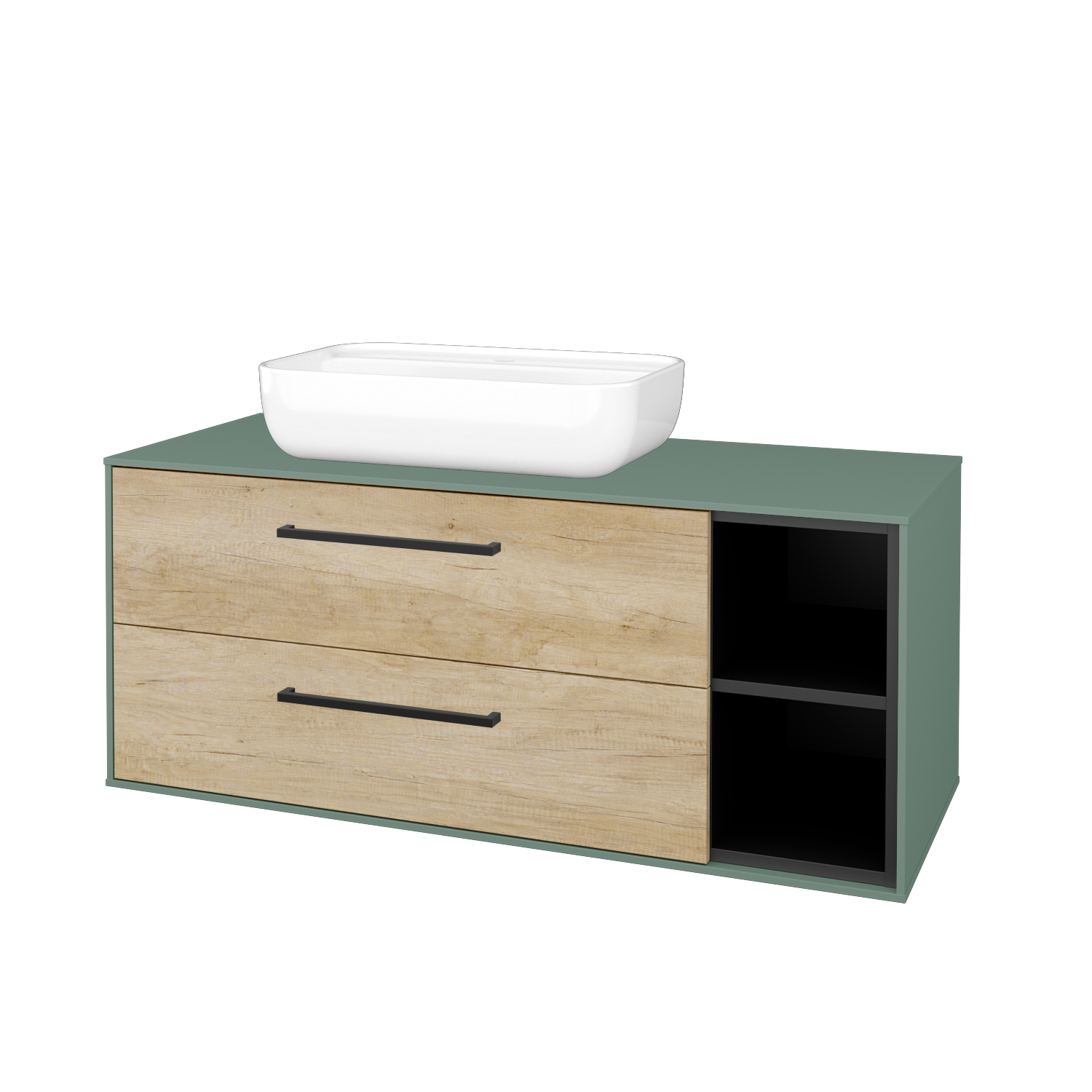Umyvadlová skříňka (1200x510x500) se 2 zásuvkami, otevřenou nikou s policí a keramickým umyvadlem…