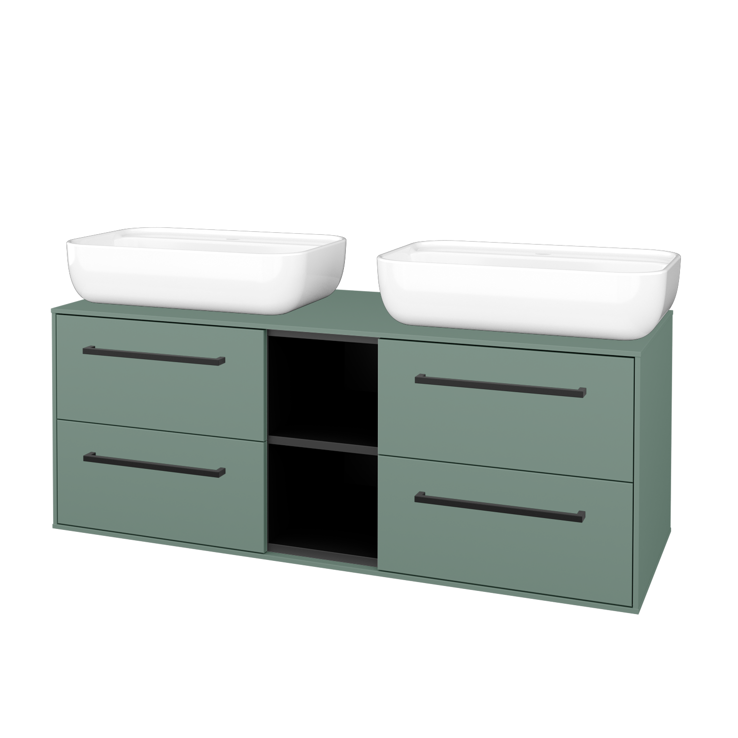 Umyvadlová skříňka (1300x510x500) se 4 zásuvkami, otevřenou nikou s pokicí a 2 keramickými umyvadly na desku Felis 2 Zobrazit více