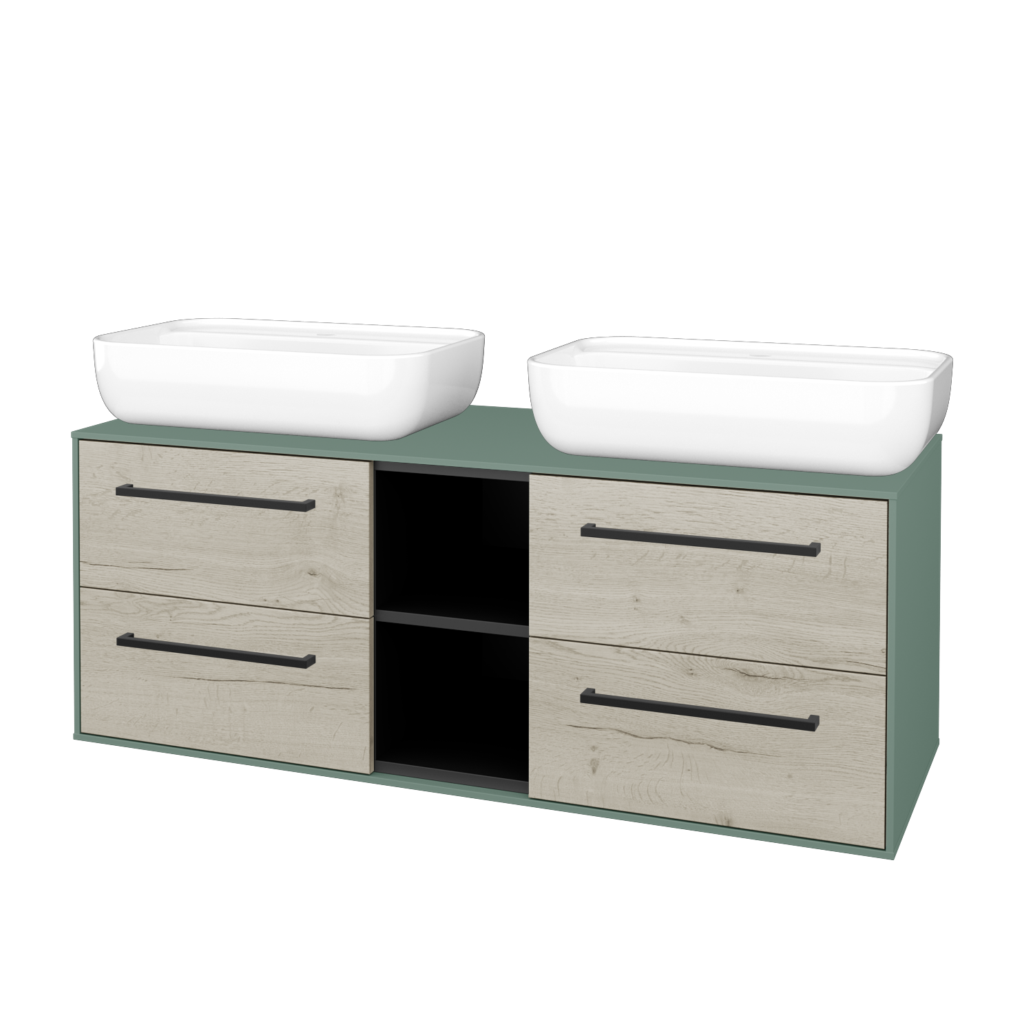 Umyvadlová skříňka (1300x510x500) se 4 zásuvkami, otevřenou nikou s pokicí a 2 keramickými umyvadly na desku Felis 2 Zobrazit více