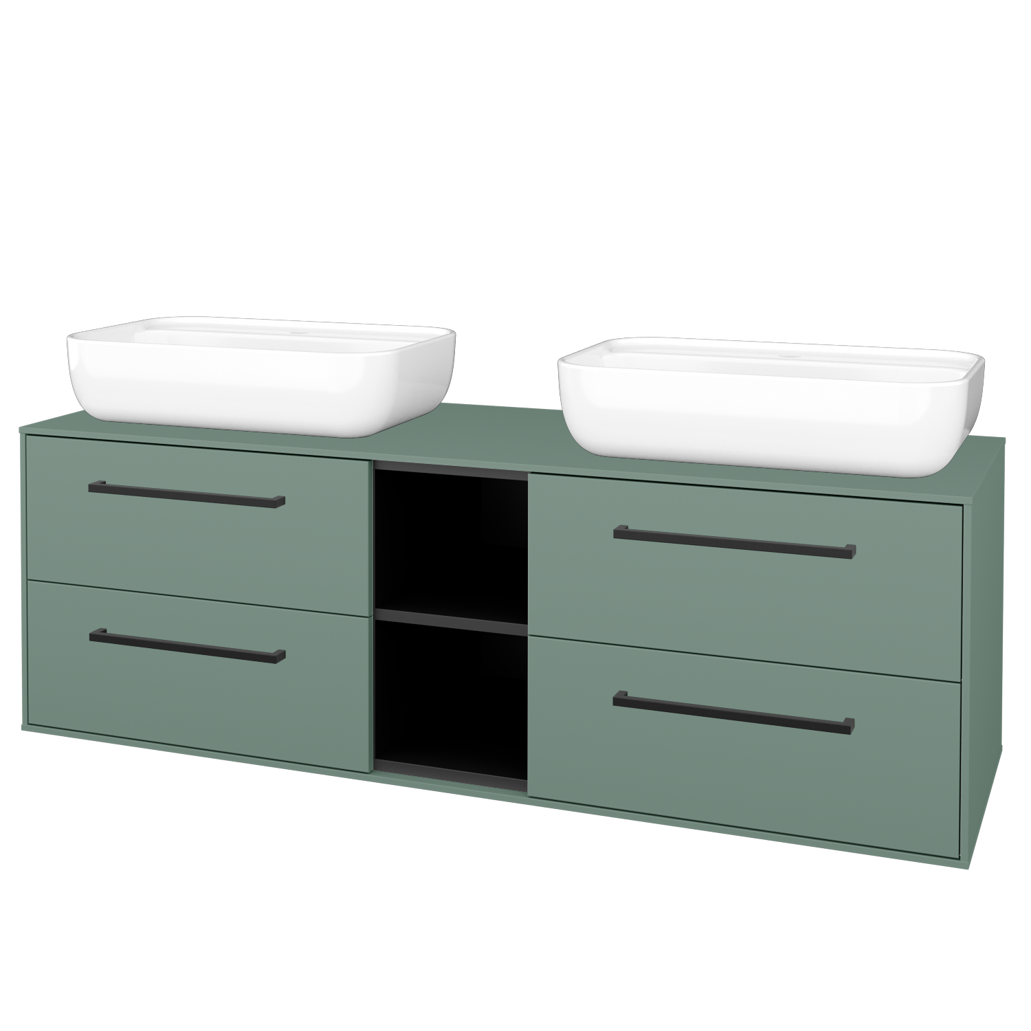 Závěsná umyvadlová skříňka 121,4x49,8x46 cm s 1 zásuvkou, nikou a 2 keramickými umyvadly Triumph