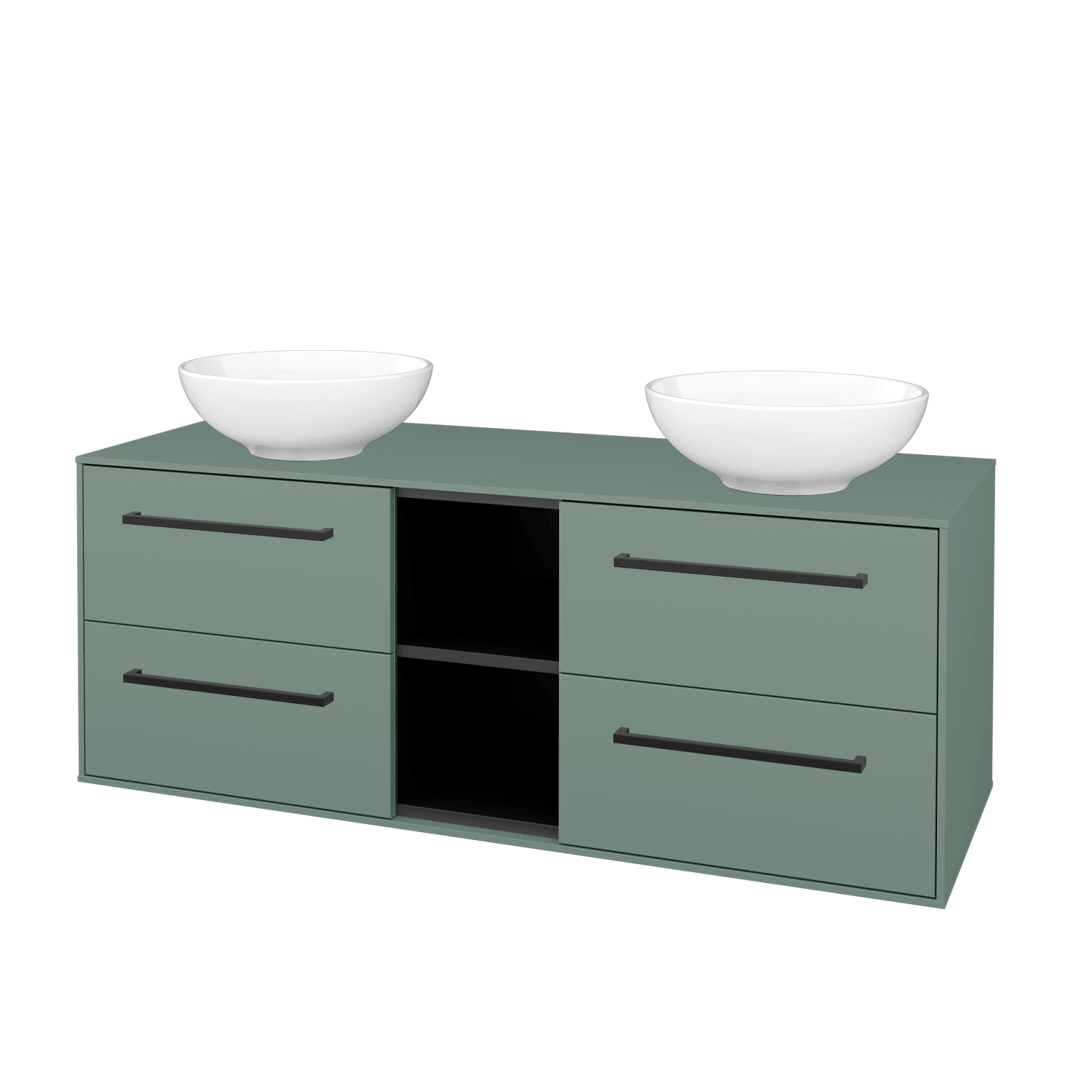 Umyvadlová skříňka (1300x510x500) se 4 zásuvkami, otevřenou nikou s policí a 2 keramickými umyvadly na desku Nikolo 1 Zobrazit více