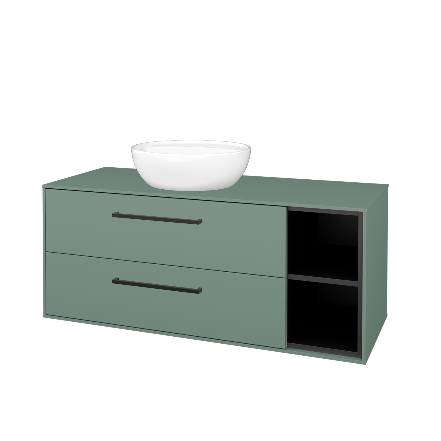 Umyvadlová skříňka (1200x510x500) se 2 zásuvkami, otevřenou nikou s policí a keramickým umyvadlem na desku Nikolo 2 Zobrazit více