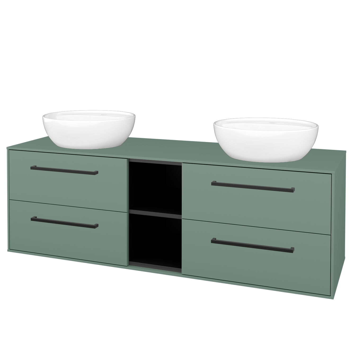 Umyvadlová skříňka (1500x510x500) se 4 zásuvkami, otevřenou nikou s policí a 2 keramickými umyvadly na desku Nikolo 2 Zobrazit více