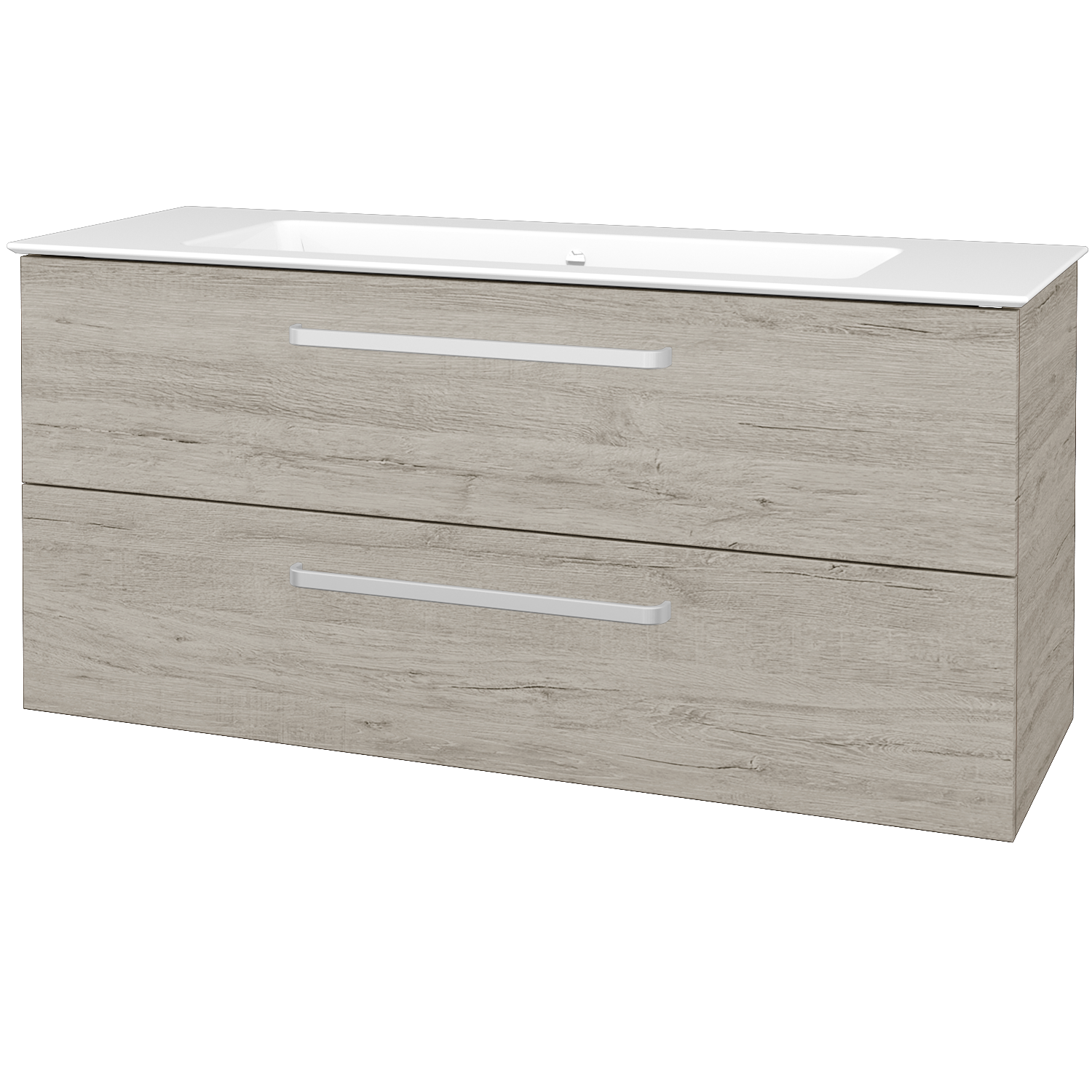 Umyvadlová skříňka (1200x560x445) se 2 zásuvkami a keramickým umyvadlem Pura 120 bez otvoru pro baterii Zobrazit více
