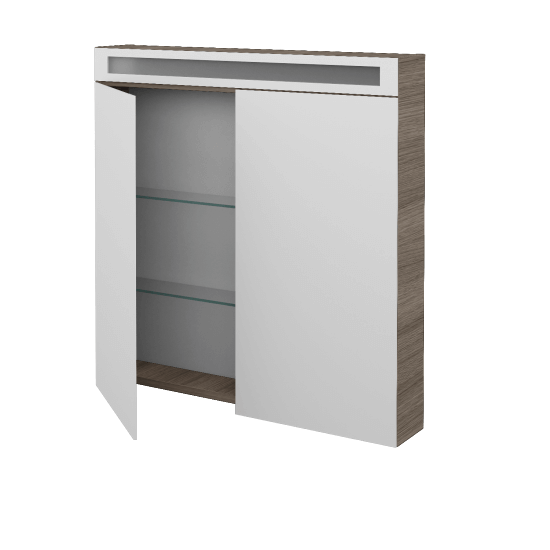 Integrované LED osvětlení je umístěno v horní části skříňky za lištou z pískovaného skla, která propouští světlo, aniž by narušovala celkový design skříňky. Světlo se ovládá nástěnným vypínačem, kterému musí odpovídat stavební připravenost v koupelně. Výkon LED osvětlení je 15,8 W a celá galerka splňuje krytí IP 44.