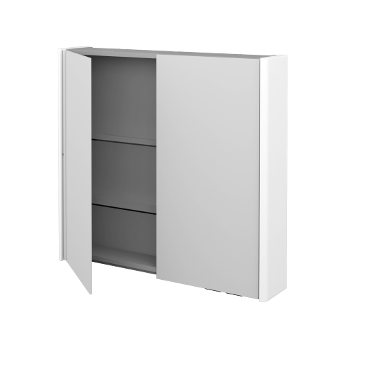 Dvoudveřová zrcadlová skříňka (800x739x138) s elektrickou zásuvkou a 2 skleněnými policemi