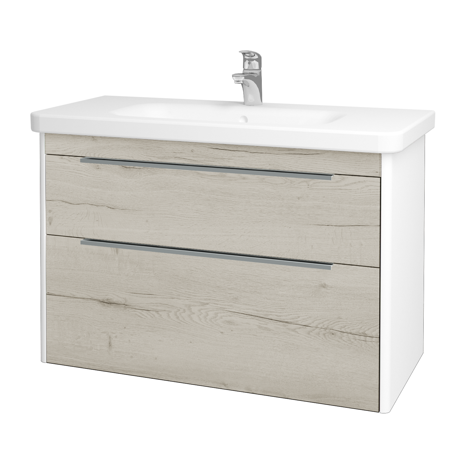 Závěsná umyvadlová skříňka (945x620x450) se 2 zásuvkami s protiskluzovými podložkami a keramickým umyvadlem Durastyle 100 Zobrazit více