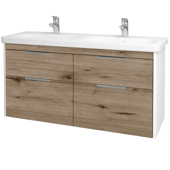 Závěsná umyvadlová skříňka (1245x620x450) se 4 zásuvkami s protiskluzovými podložkami a keramickým dvojumyvadlem Durastyle 130 Zobrazit více